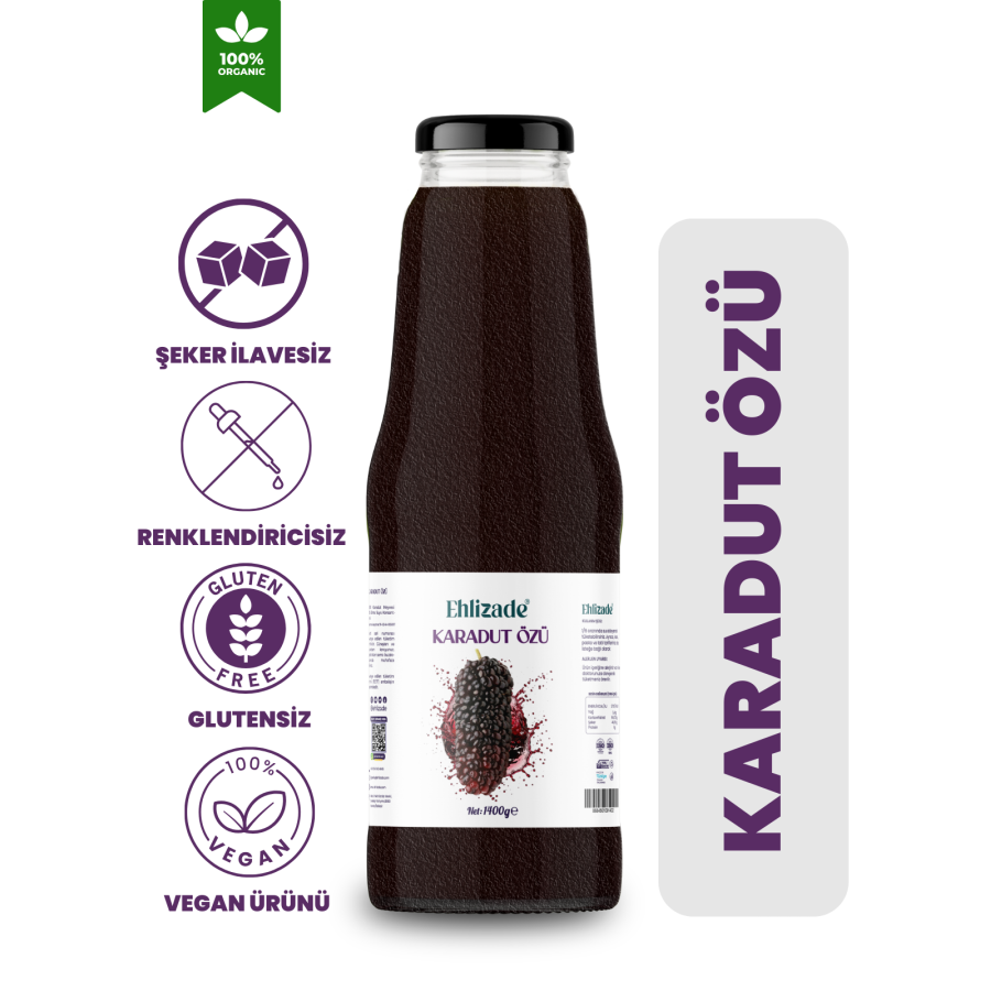 - %100 Bütün Meyve Deneyimi: Bu şişenin içinde sadece karadutun suyu değil, aynı zamanda antioksidan zengini kabuğu, lif dolu posası ve kendine has besinler içeren minik çekirdekleri de var. Kısacası, meyvenin bütün iyiliği!