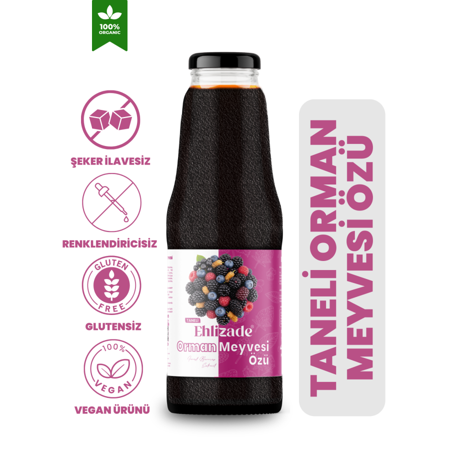 Doğanın cömertliğini ve renklerinin gücünü her damlada hissedin. Ehlizade Orman Meyveleri Özü ile güne daha canlı, daha sağlıklı ve daha enerjik başlayın!